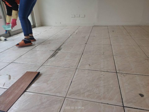 除膠完,清潔地板