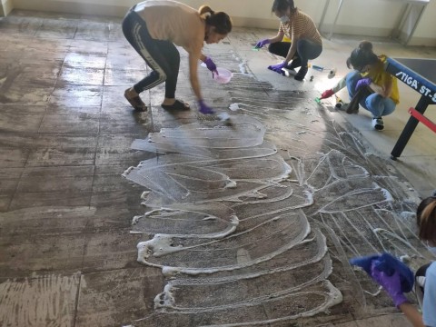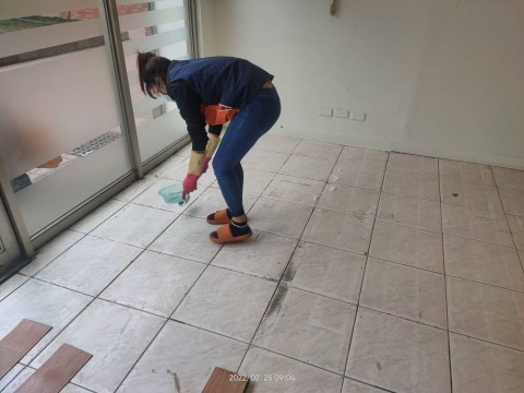 除膠完,清潔地板